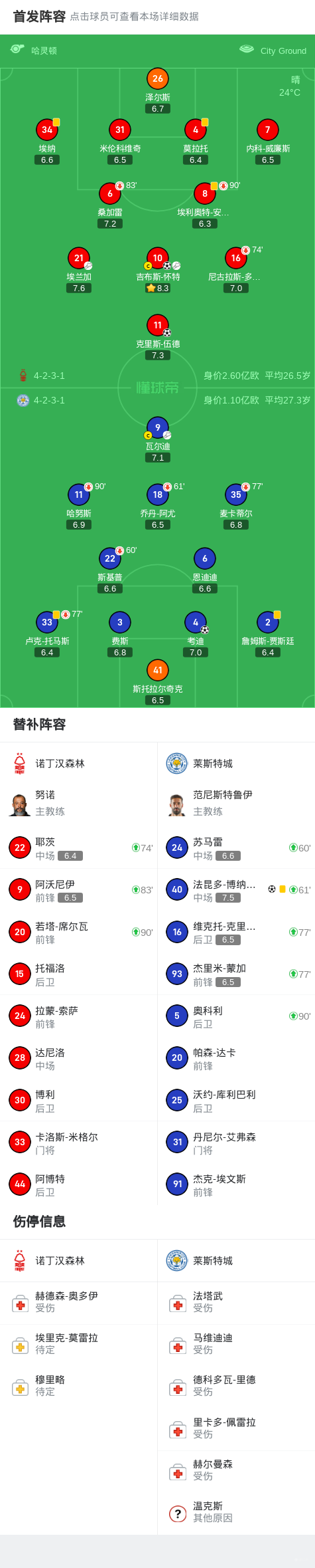 随后,森林并没有就此放弃,25分钟,吉布斯-怀特在一次角球战术中,高高跃起头球攻门,皮球洞穿莱斯特城的球门网,将比分扳平,球场气氛再度被点燃。